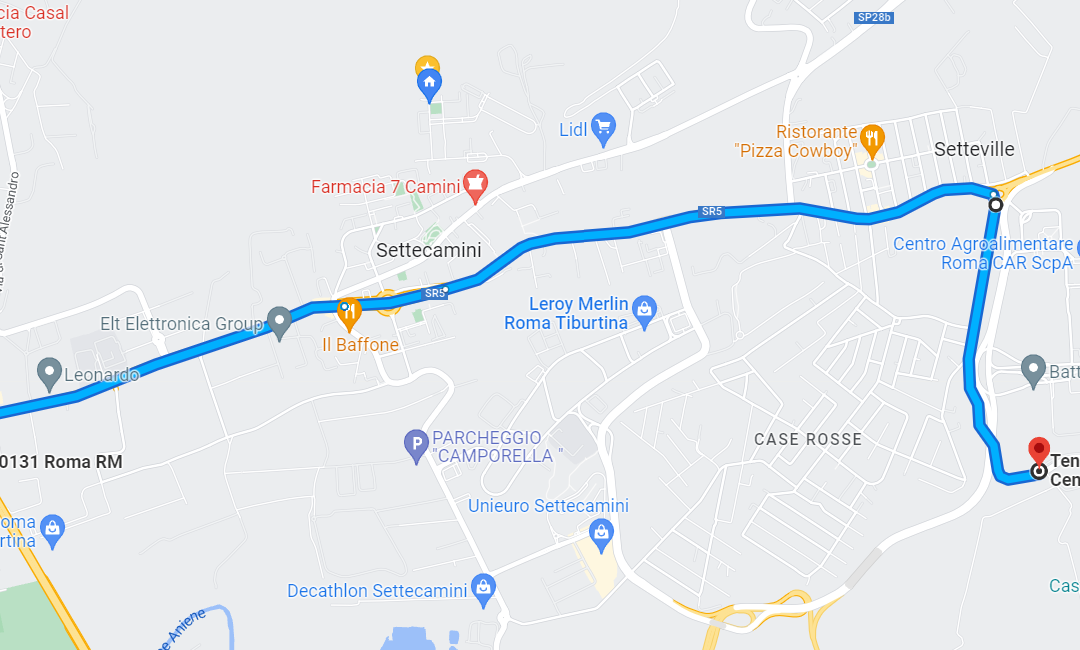 Dal GRA prendere uscita 18 in direzione Tivoli, dopo circa 5 km alla rotonda prendere la prima uscita Via della Tenuta del Cavaliere in direzione Lunghezza. Dopo circa 1,5 km la destinazione è sulla vostra destra. Clicca qui per indicazioni