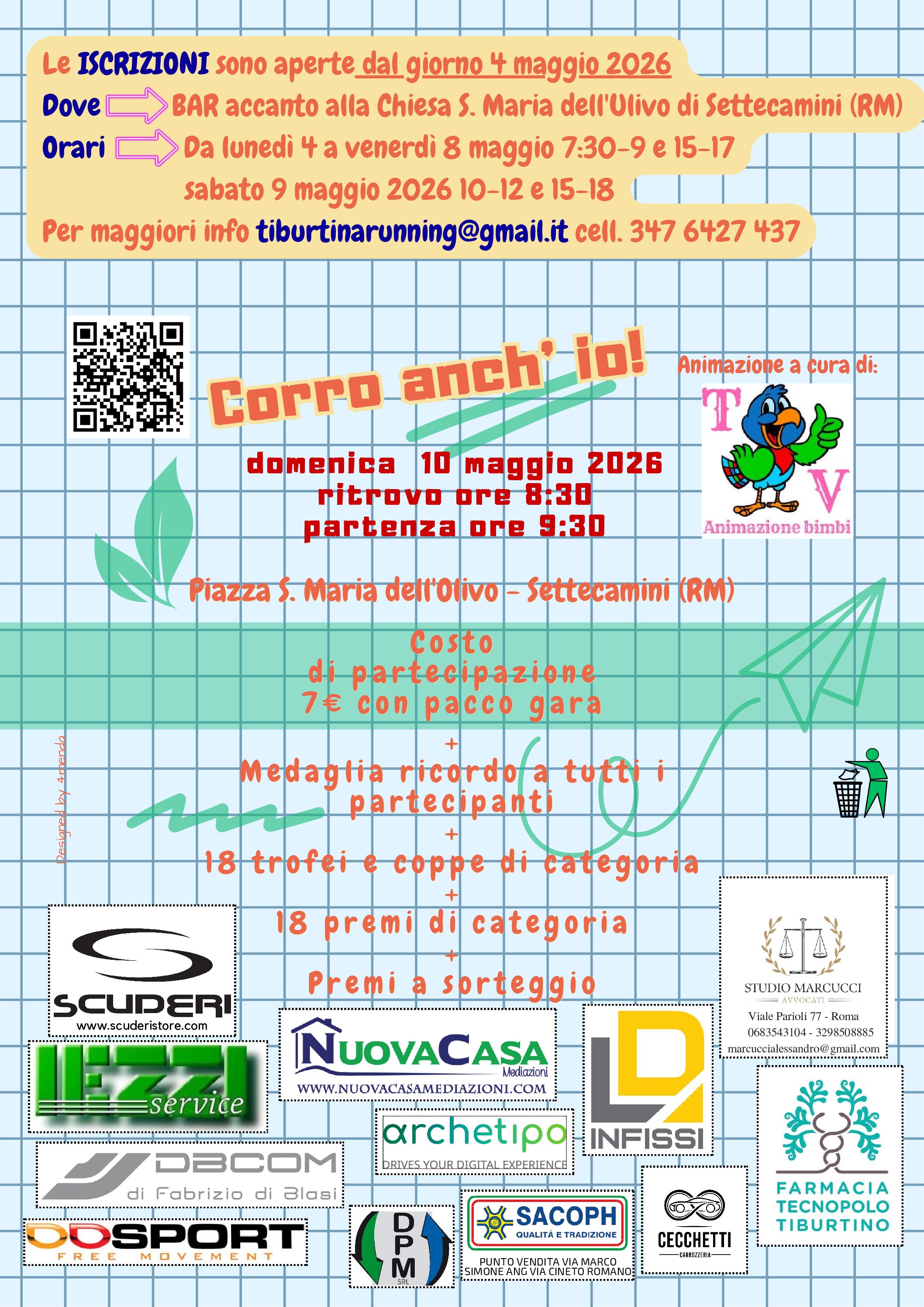 DOMENICA 18 MAGGIO 2025 COMUNICATO del Presidente della A.s.d. Tiburtina Running Roma in occasione dell’ottava edizione della “CORRO ANCH’IO 2025” La Corro Anch’io è una gara non competitiva che prevede due distinti percorsi in base all’età dei partecipanti. Per i...